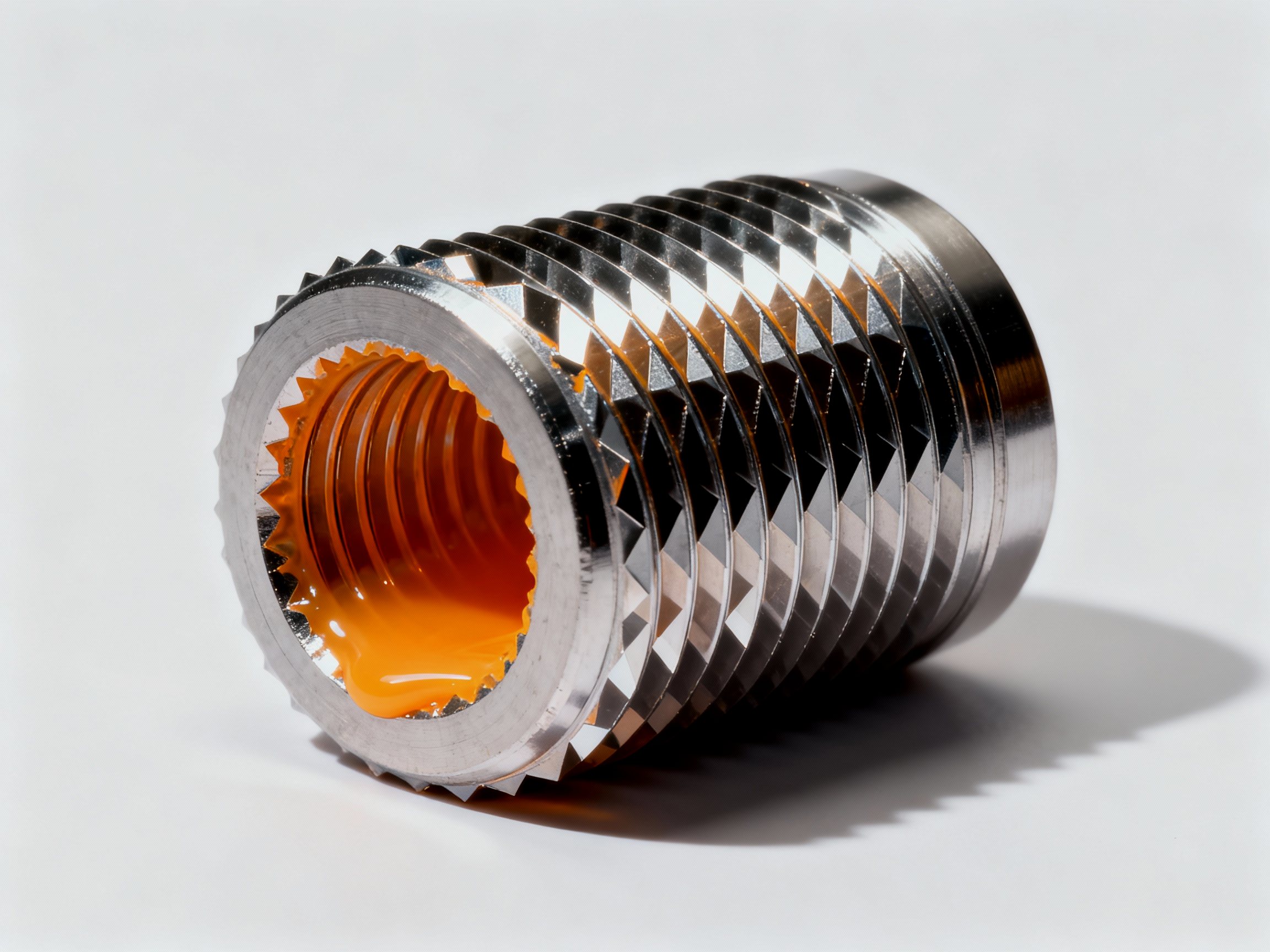 To maximize rotational resistance, the geometry of injection molding threaded inserts must be optimized for resin flow. Standard straight knurls provide limited resistance, functioning primarily to prevent pull-out. In contrast, bidirectional diamond knurls offer superior performance by presenting opposing faces to the torsional force. During the molding cycle, molten plastic flows deep into the roots of these diamond patterns, solidifying to form a rigid, continuous interface. Deep undercuts further enhance this bond, creating a vertical lock that prevents the insert from rising during tightening. This full encapsulation ensures that the torque load is distributed across the entire surface area of the insert rather than just the upper rim.